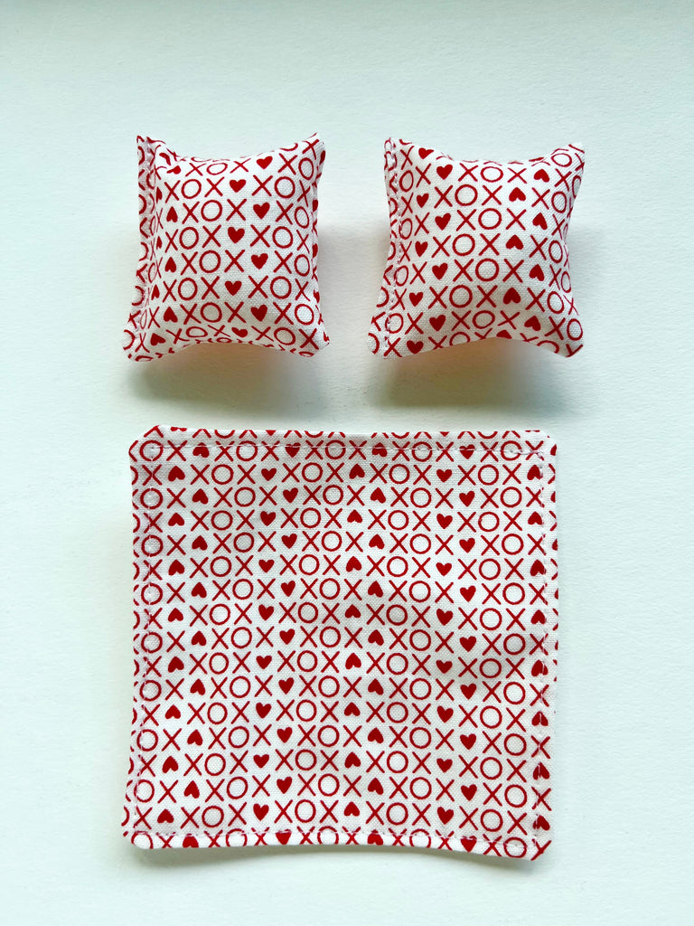 1930s Dollhouse Small Valentine Quilt and Pillows, 1:12 scale, maileg mice furniture, modern dollhouse, dollhouse bedding