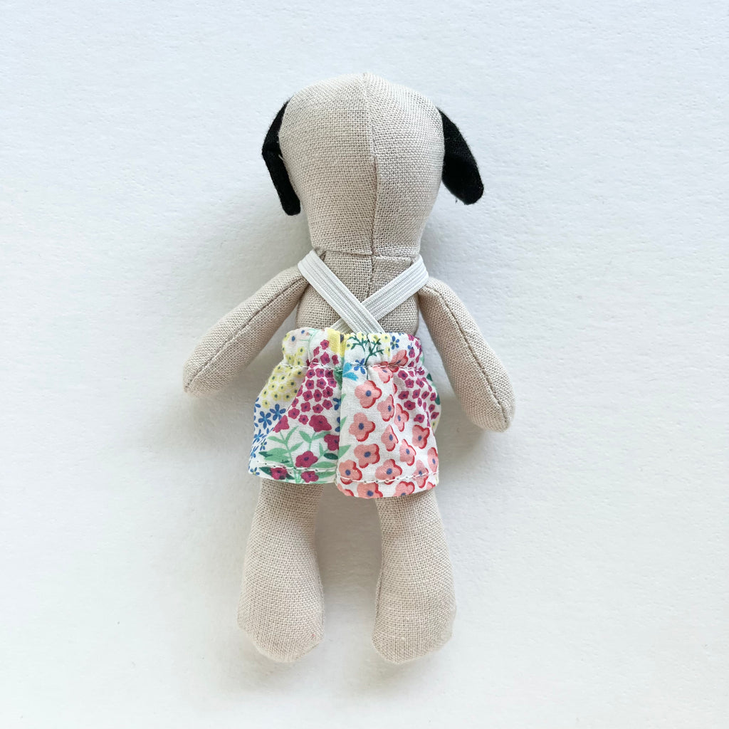 Handmade and hand sewn plush toy that great for imaginative play or bookshelf/desk decor. This Mini Pug companion is plush doll that comes dressed in a ditzy floral dress.