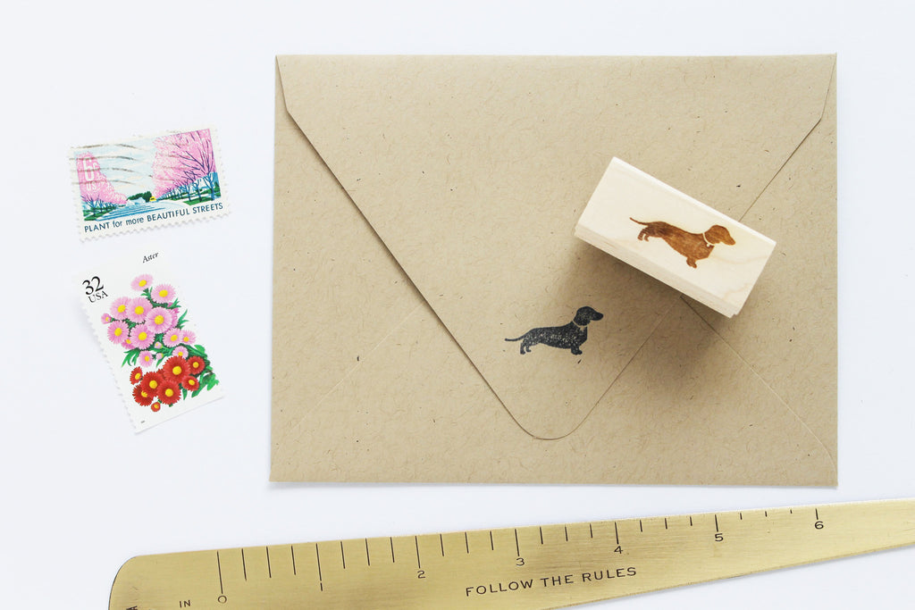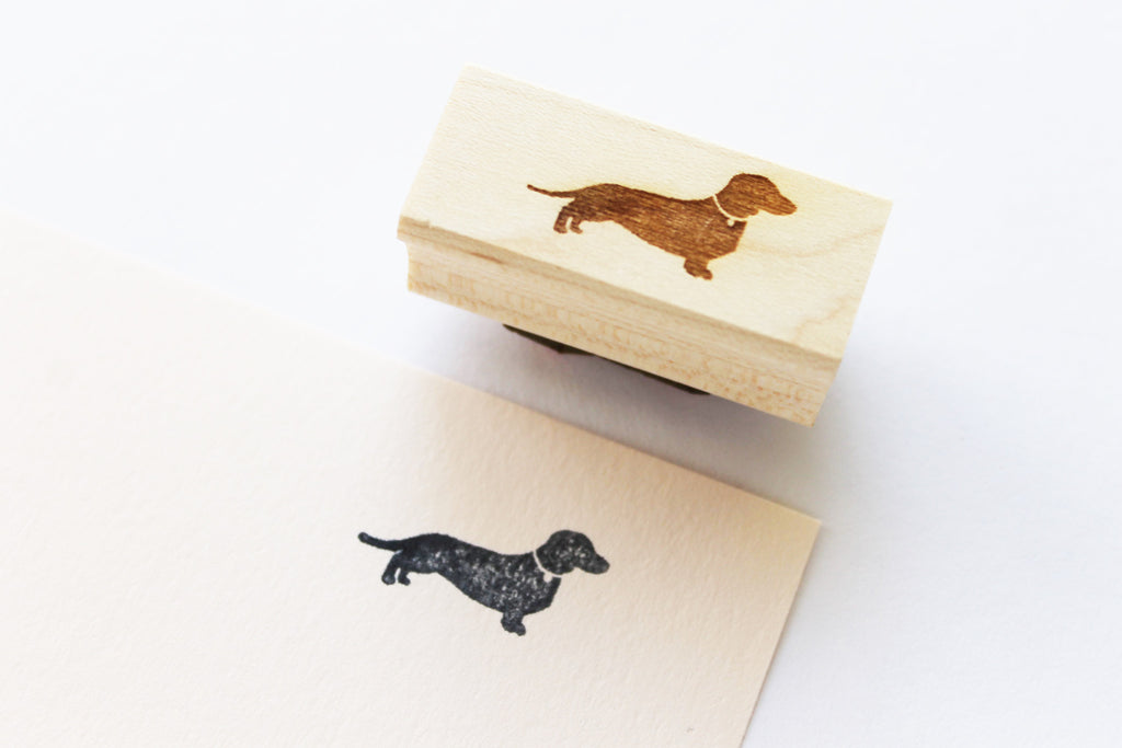 Introducing the little dachshund stamp! This is stamp is perfect for a dachshund lover! This stamp is wood mounted rubber stamp of a dachshund silhouette with collar. The stamped image size is 1/2"x 1 1/2".