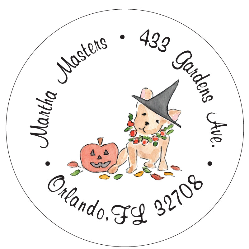 These are round address stickers with a Bulldog wearing a Christmas holly! Each are personalized with your name and address it!